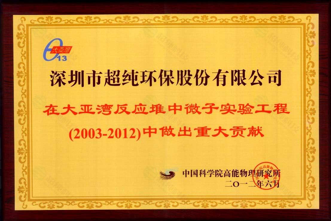 大亞灣中微子實驗貢獻獎