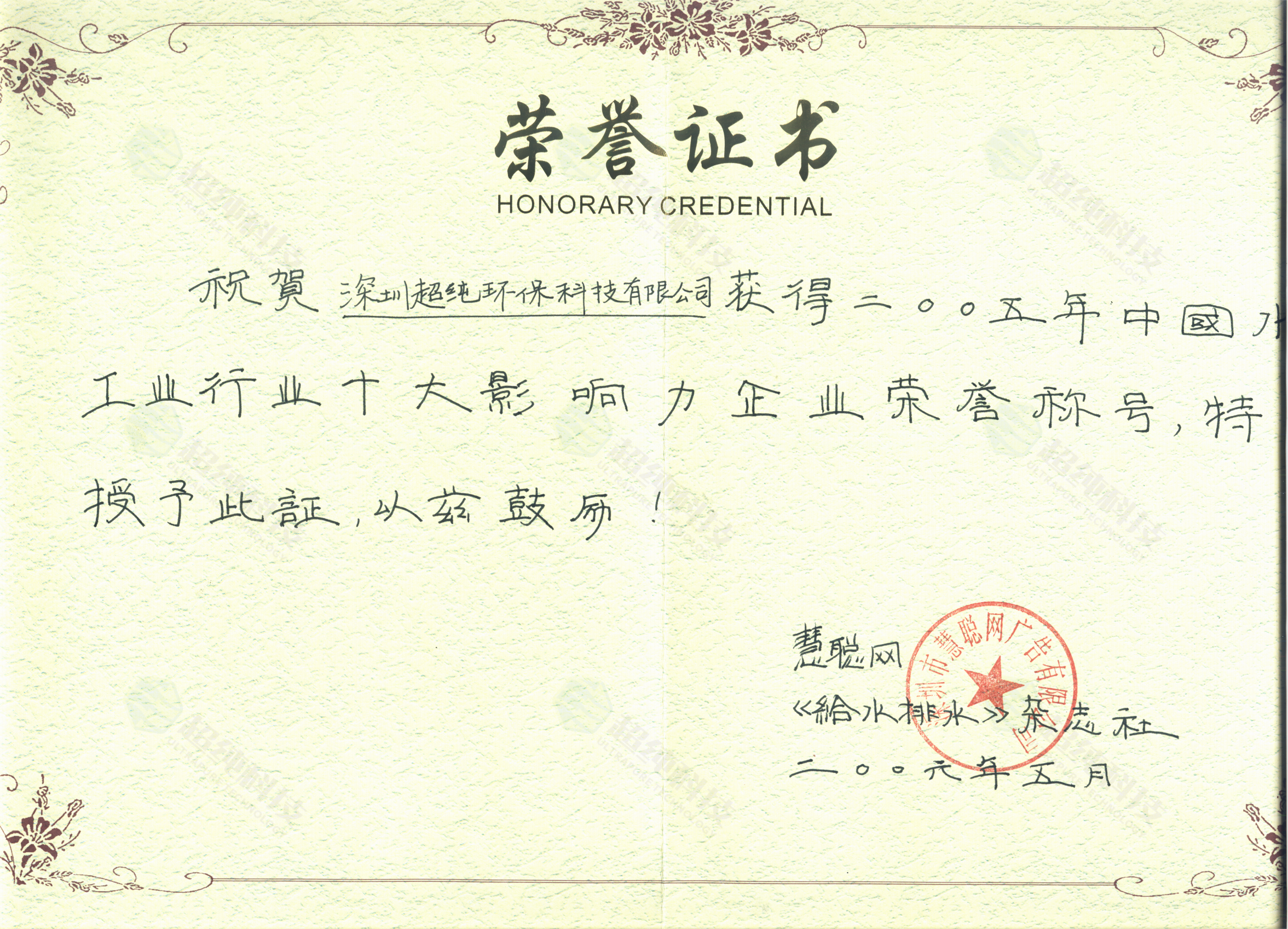 工業行業十大影響力企業榮譽證書