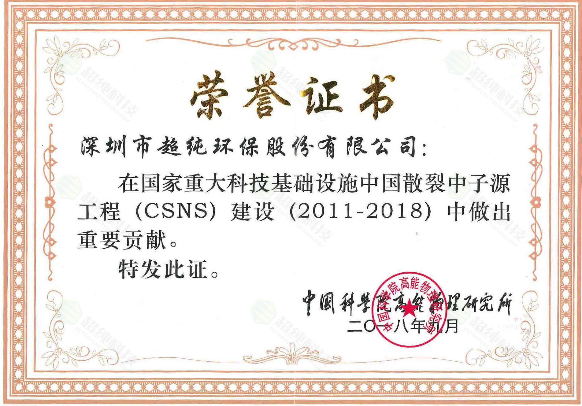 中國科學院高能物理研究所榮譽證書